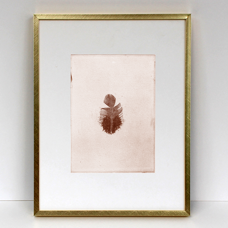 Pluma pullus (Chicken feather) is a collection of soft-ground etchings made from feathers shed by our family’s flock of chickens as they molted, and collected by my children in the backyard of our Kirkwood, Missouri home.