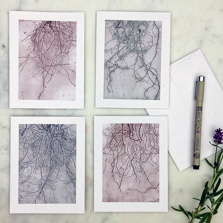 Radix basilicum (basil roots) is a collection of soft-ground etchings made from the roots of basil plants. My children pull these roots from the first of our family's backyard garden as we prepare the our Kirkwood, Missouri home for winter.